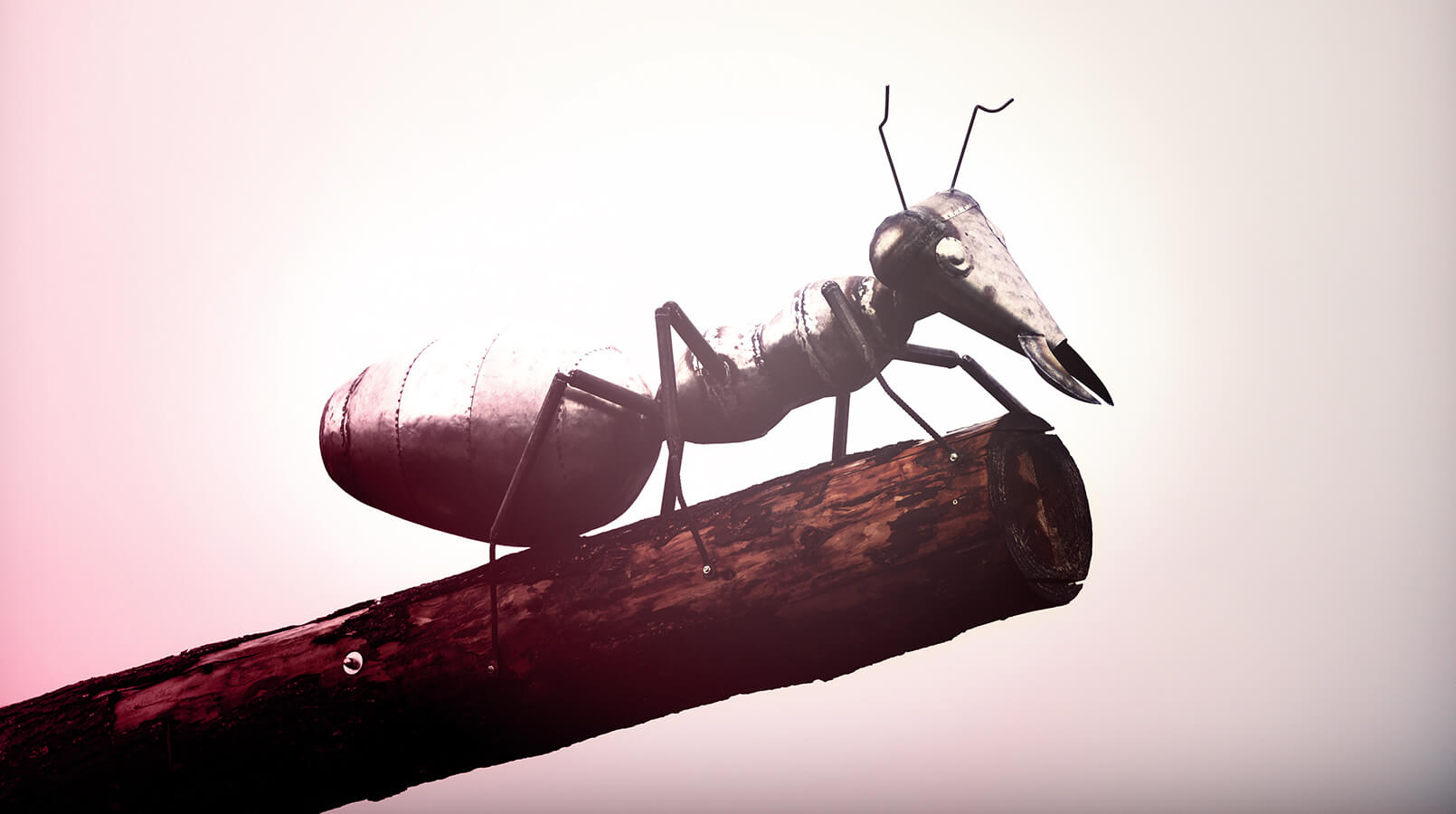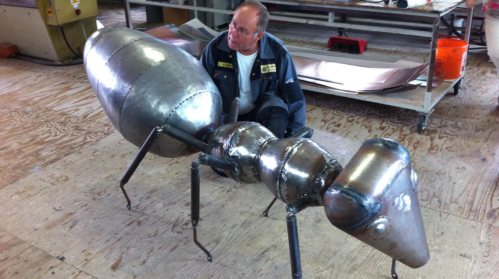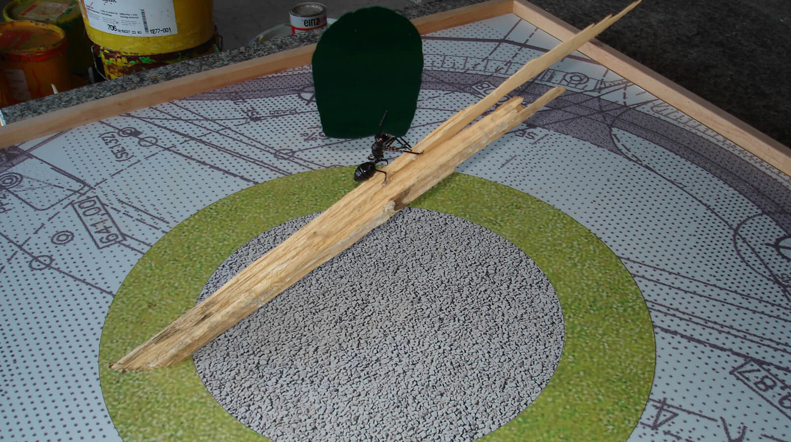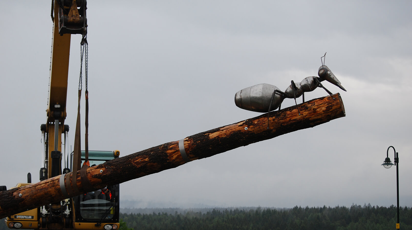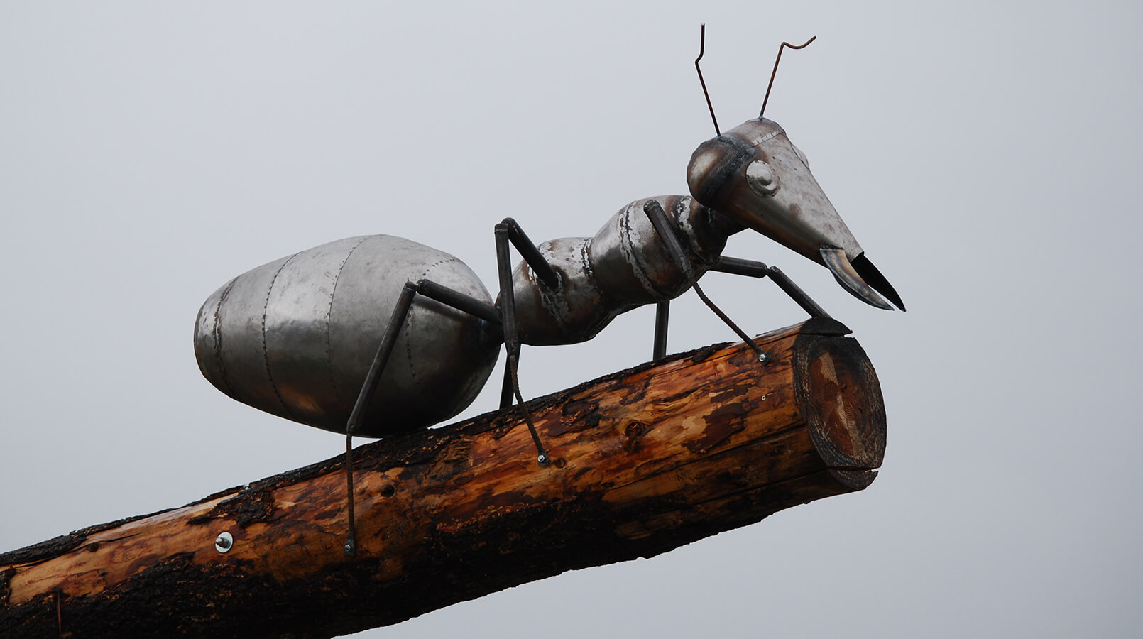 Mit scheinbarer Leichtigkeit bewegen sich die Stahl-Ameisen entlang auf einem aufstrebenden Ast. Bewusst zieht Schweikle einige Parallelen zwischen seinem Heimatort und den fleißigen Vorbildern aus der Natur.